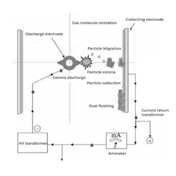 Den grundlæggende drift af en elektrostatisk præcipitator kan opdeles i flere trin: